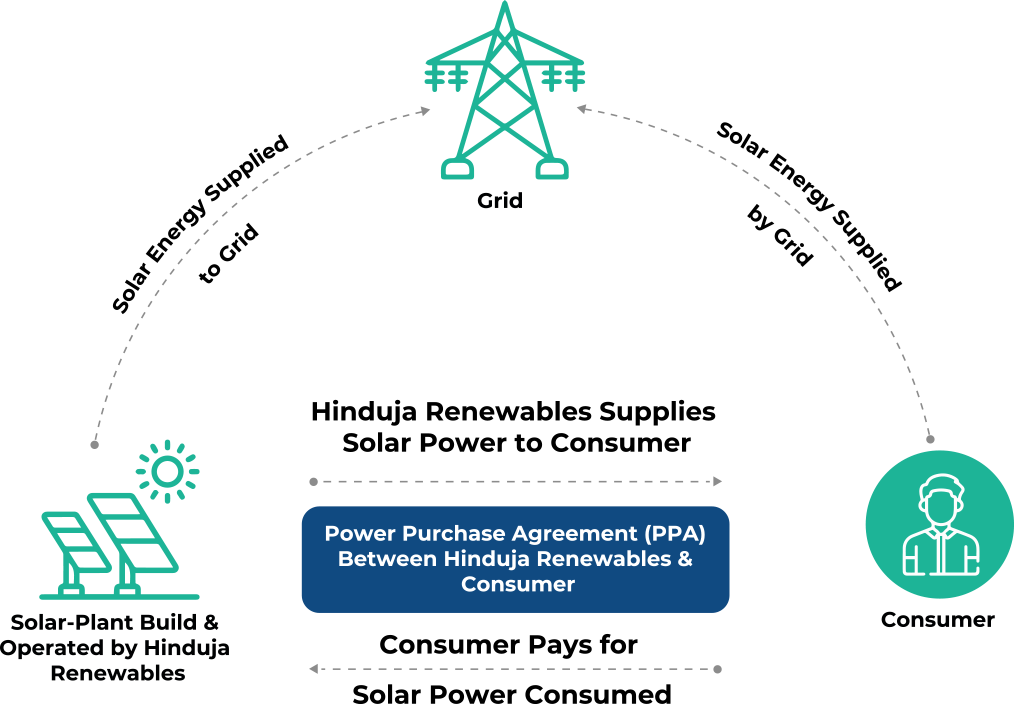 The consumer signs a long-term PPA directly with the renewable energy generator, ensuring predictable tariffs over the contract period.